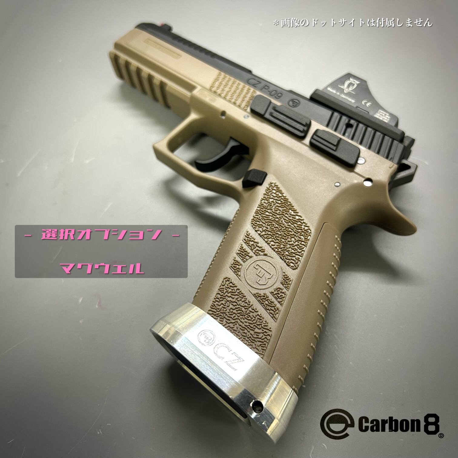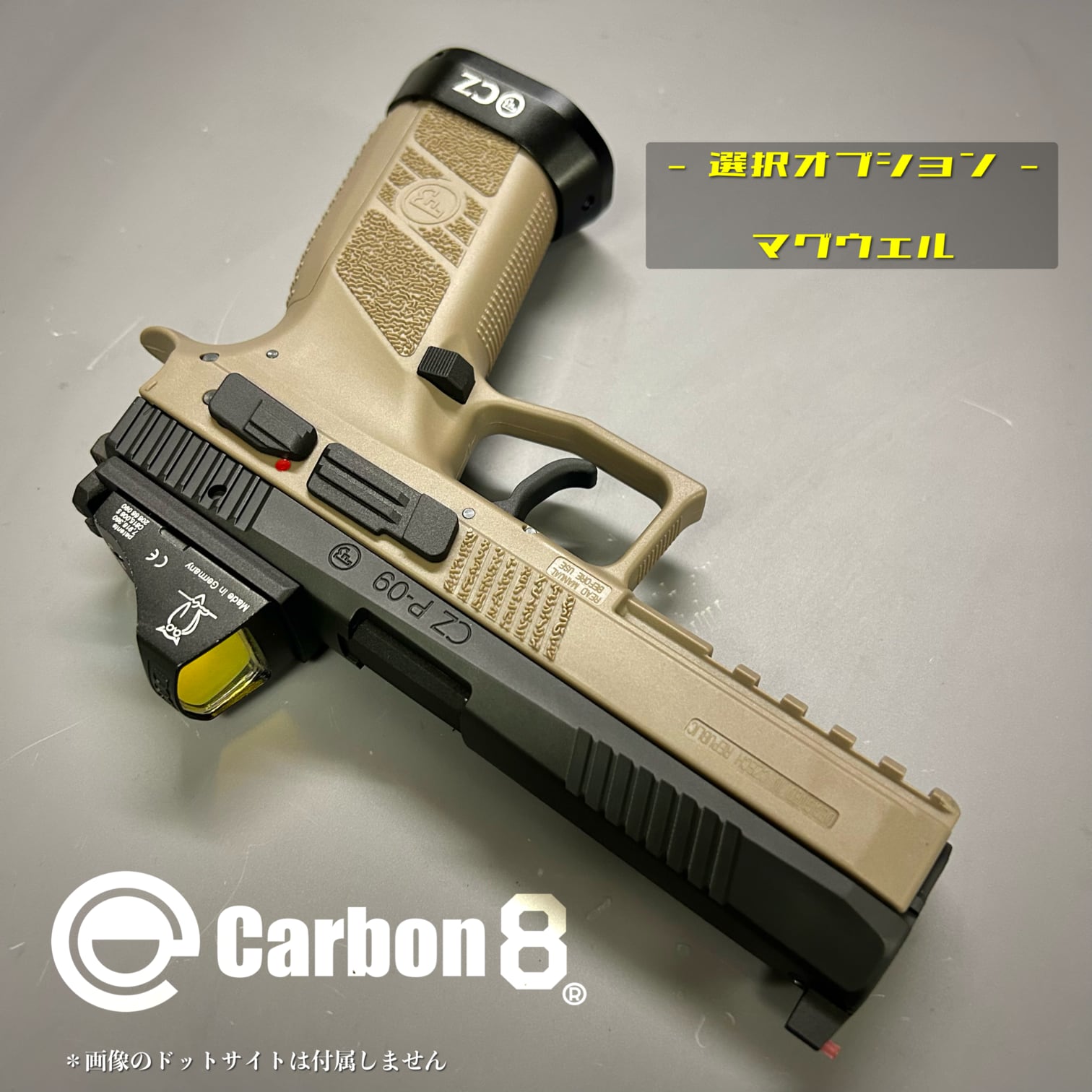 実銃CZ社オフィシャルライセンスモデルP-09に、マイクロサイトを搭載できるようになるマウントプレートと専用スライドセット(画像2枚目)を組み込んだカスタム済モデル。